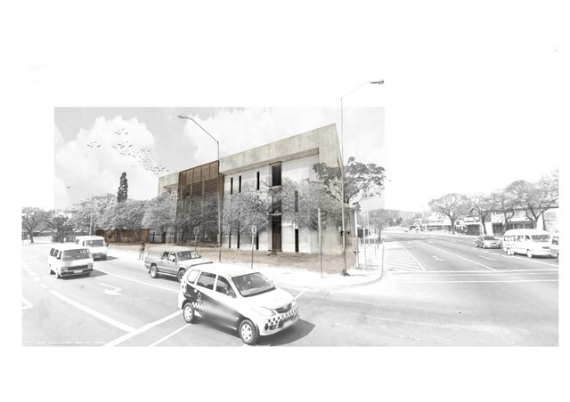 The site is located in close proximity to the Tshwane CBD, accessed predominantly with vehicles and pedestrian access is limited as the site forms an island surrounded by the prominent streets mentioned above. Three major functions are expressed as three easily recognizable forms, linked with an internal, covered pedestrian spine. As the longest sides of the site front west and east, the building responds with solid western and eastern walls and maximum exposure to north is afforded, with access and services situated along the east and west.