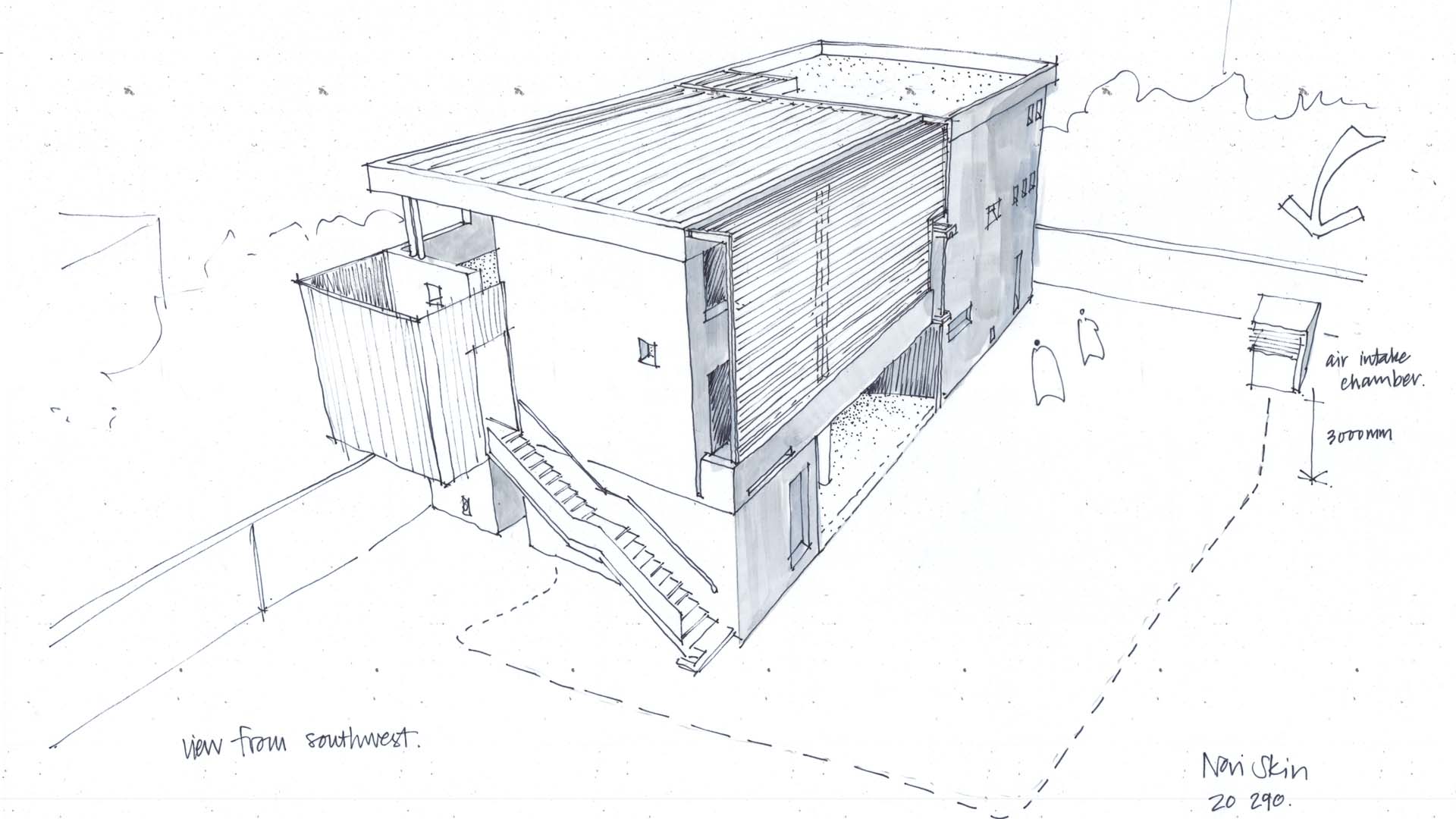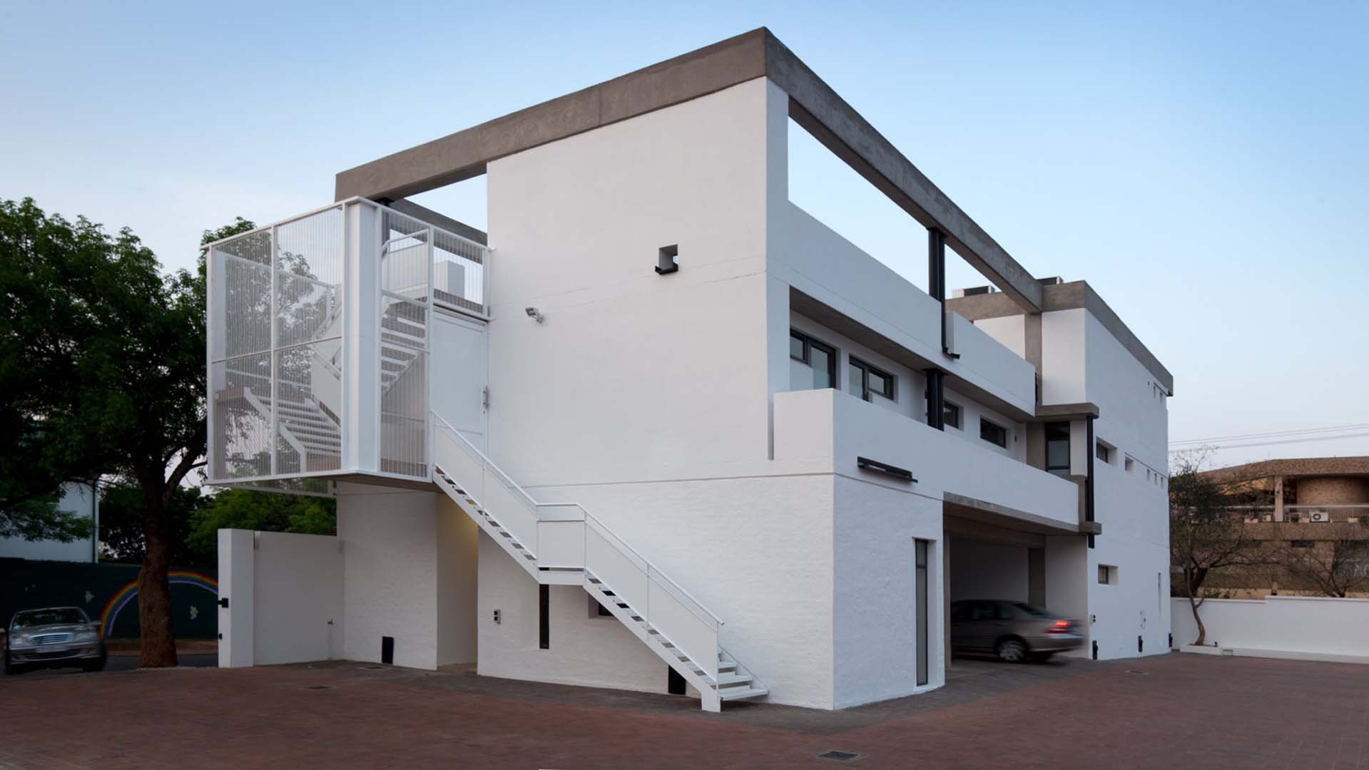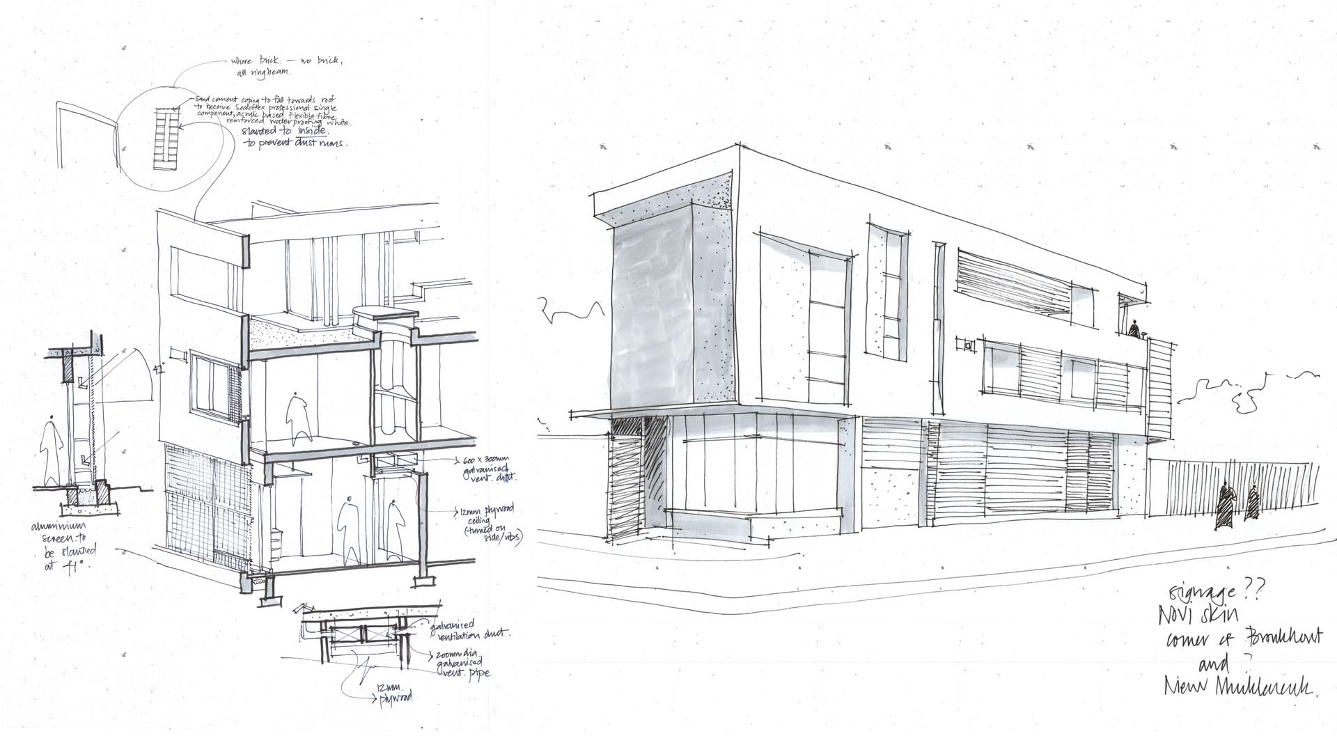 The building footprint edges onto site boundaries closely to create a defined street presence. Given the programmatic requirements for medical facilities, privacy from the street is a major design concern. Therefore, privacy is created while active edges are future enabled in the design of the northern facade. Here, a demountable screen becomes a device for creating privacy while also acting as climatic and security mechanism. Upon entering the building, the spatial experience is enhanced with verticality. A triple volume results in a dramatic entrance lobby and waiting area.