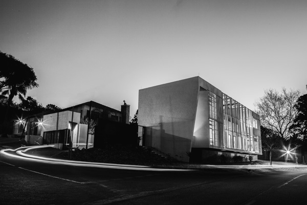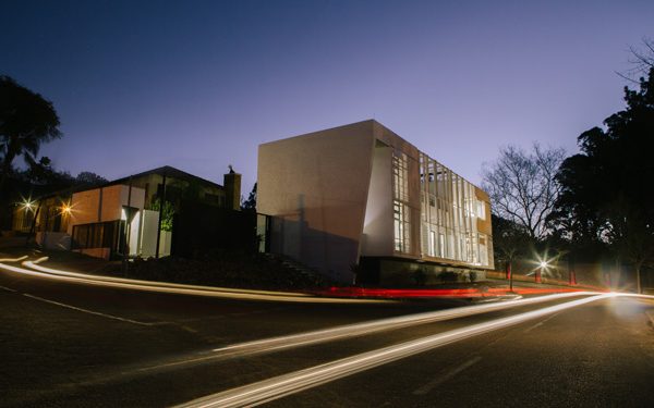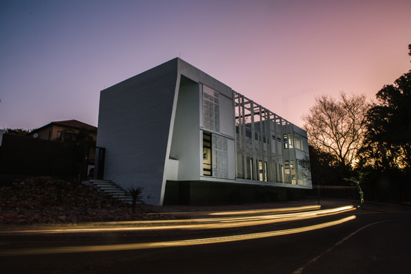 The medical pavilion was positioned to edge tightly along the northern boundary of the site, with cars tucked away neatly behind. A double volume defines the entrance, dramatically framed with the corner articulation that responds to its ambition of becoming a small landmark. The pavilion takes cues from the architectural history of Pretoria. Envisioned as a stoep with a pergola to its north, the consulting rooms are placed at the centre of a constrained envelope. The exterior is bagged and painted white (another nod at local traditions), with a smooth interior finish. Local materials were used as far as possible, with furniture pieces hailing the city figure-ground, whilst responding to the notions of ethics of medical practice rather than simply aesthetics. As such, an environment that embodies an embracing, warm and therapeutic sensibility underpinned all decisions in the choice of careful detailing. An urban roof garden, again hailing the distant urban history, creates a small sanctuary. A carefully considered screen that will ultimately become a green screen softens the proximity to road and parking lot onto which the building faces, whilst binding the northern façade. It also mitigates the climate of the interior of the building, along with sliding screens that were again the result of a meticulous design process.