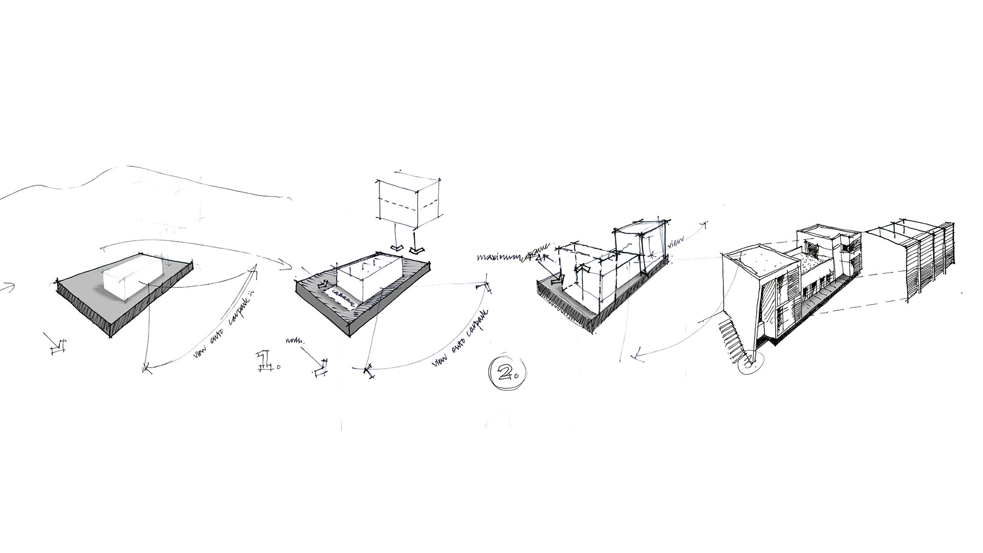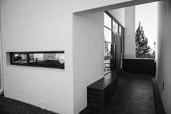 The narrow site for this medical pavilion (200m2) faces onto a sea of parking to its immediate north (belonging to the Wilgers Hospital), with residential buildings along all remaining sides. The massing and placement on site were determined by the balance between a tight budget, FAR and said parking regulations respectively, followed by the rest of the opposing forces described above.